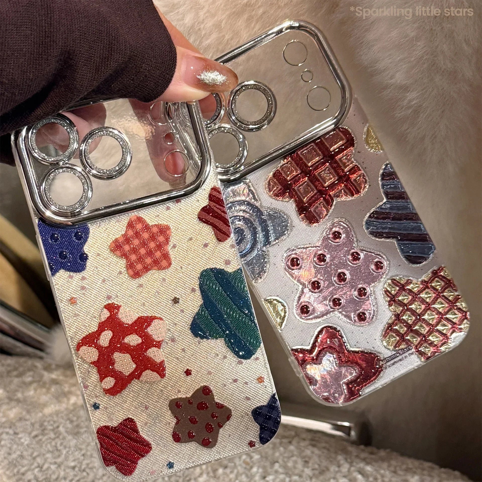 Korean Colorful Stars Glitter Plating Phone Case For iPhone