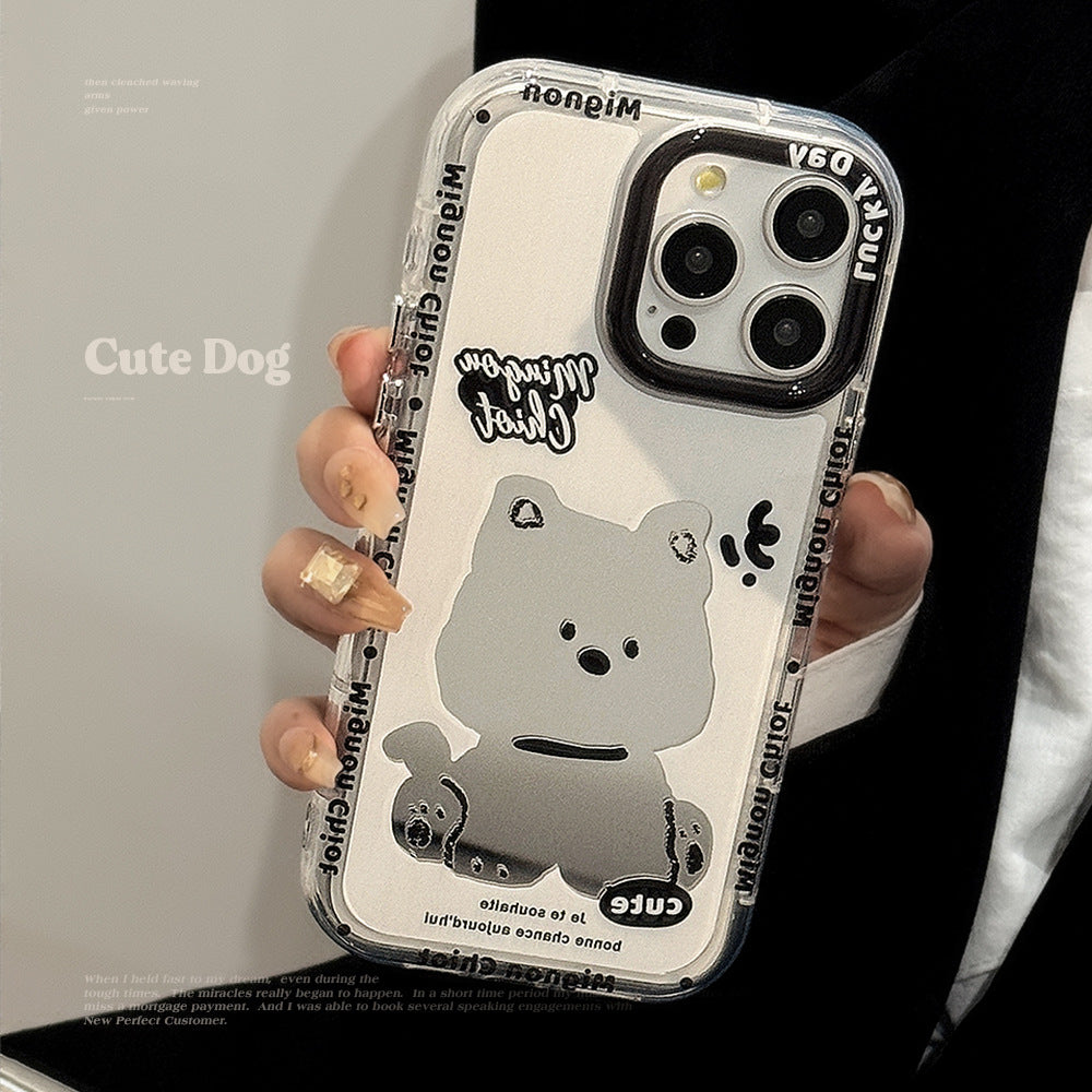 Sweet Cool Puppy Mirror Suitable for 16ProMax Apple 15 Mobile Phone Case iPhone17 Cartoon 12 Generation 11 Hand Rope